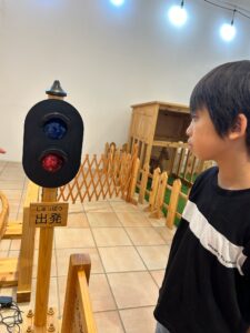 順番待ちをして自分の番がきたら 「しゅっぱ〜つ、しんこう🚊」