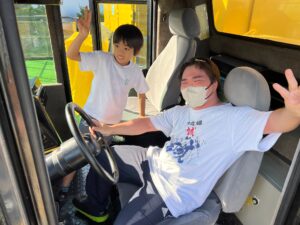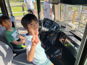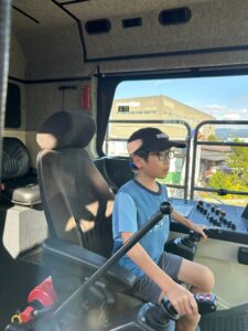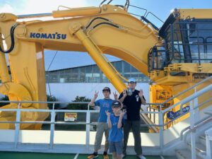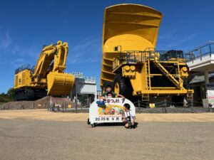 敷地の中央には、世界最大級のダンプトラックと油圧ショベルがどど〜んと置いてあり、試乗することもできました😊