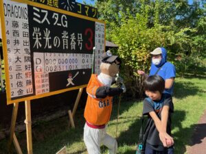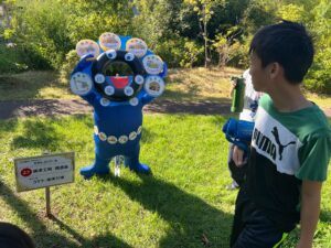 駐車場から施設までの散歩道には、いろんなテーマで作られたかかしがたくさん展示されていて、楽しみながら向かっていきました🎶