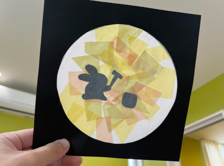 次は黒画用紙の真ん中を「お月様」のように、まんまるの形に切り抜こう!