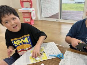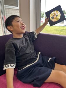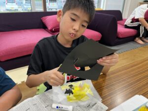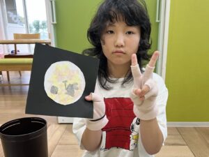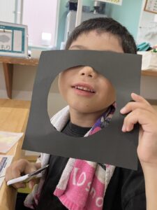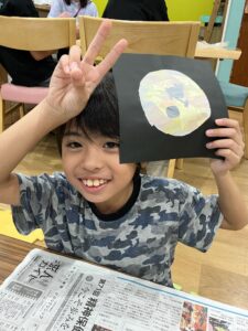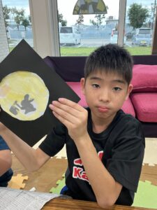 次は黒画用紙の真ん中を「お月様」のように、まんまるの形に切り抜こう!