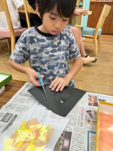 材料は、トレーシングペーパー、お花紙や折り紙、黒画用紙 を使います!