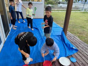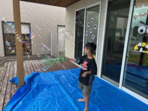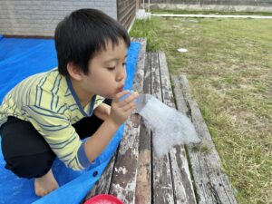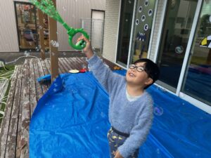準備されたシャボン玉セットを見ると、子どもたちは大喜びで遊んでいましたよ♪🤗