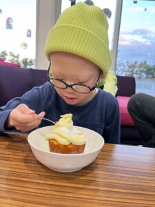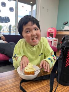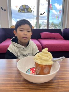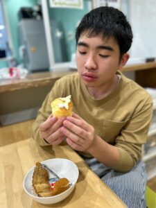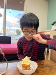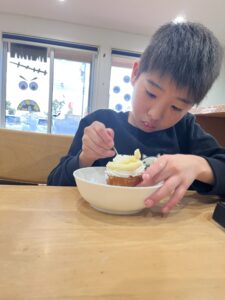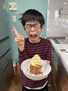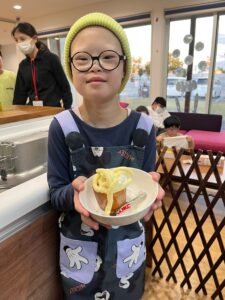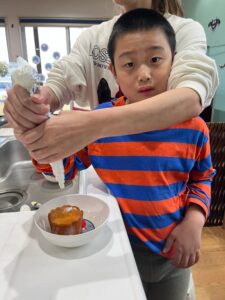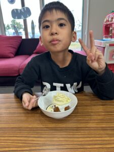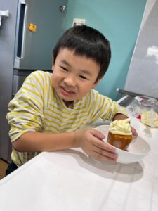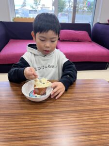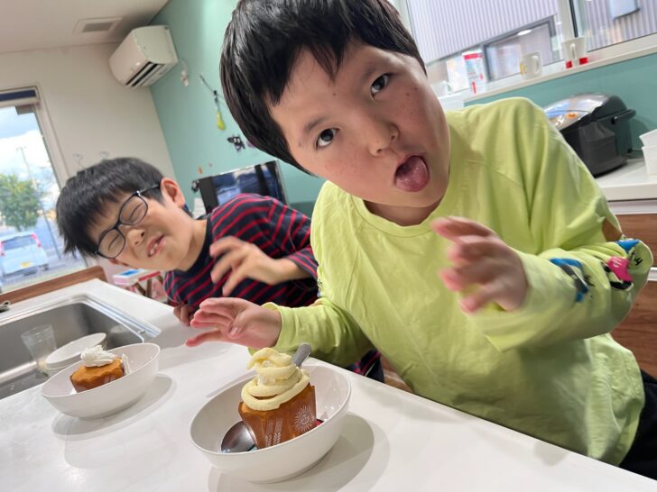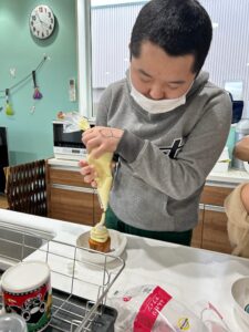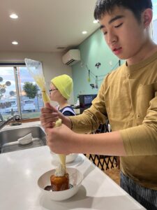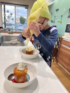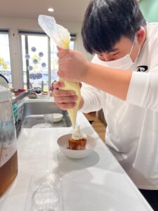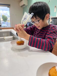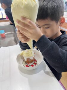 さつまいもクリームは少し硬いので、絞るのが大変そうでしたが、子どもたちは上手に盛り付けていました👏✨
