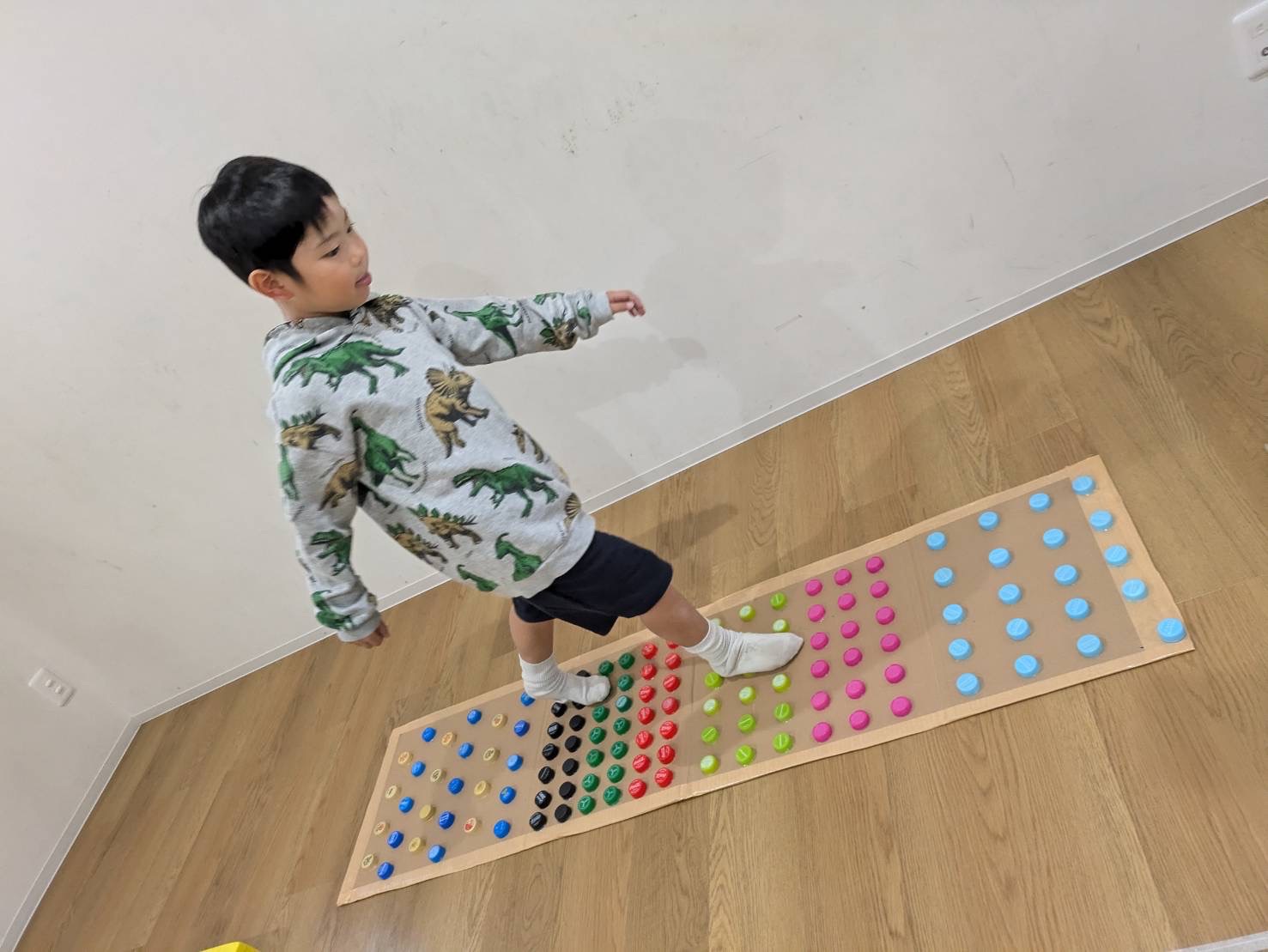 お次はペットボトルキャップがずらりと並んだゾーンを歩くよ。
