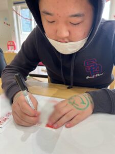 いきなり本番書き!が不安な子は、えんぴつで下書きをしてから、マジックで仕上げていましたよ☺️