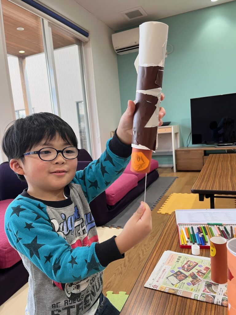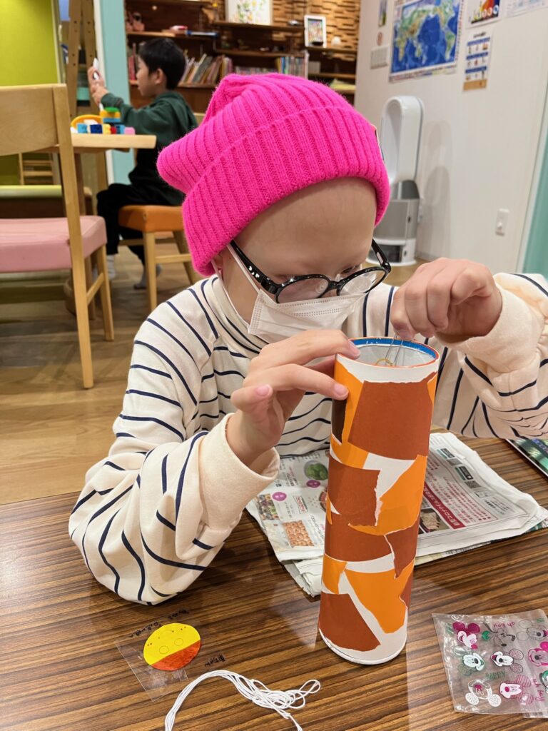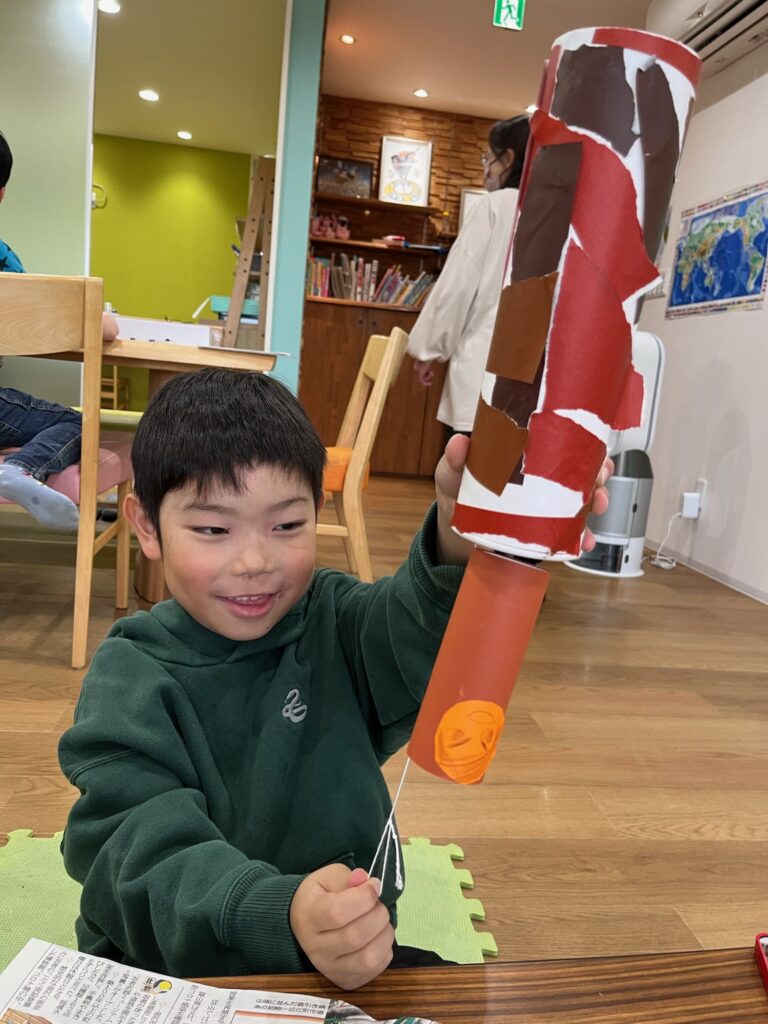 糸を引っ張ったり、離したりして、みのむしがかくれんぼするのを楽しみました😀✨