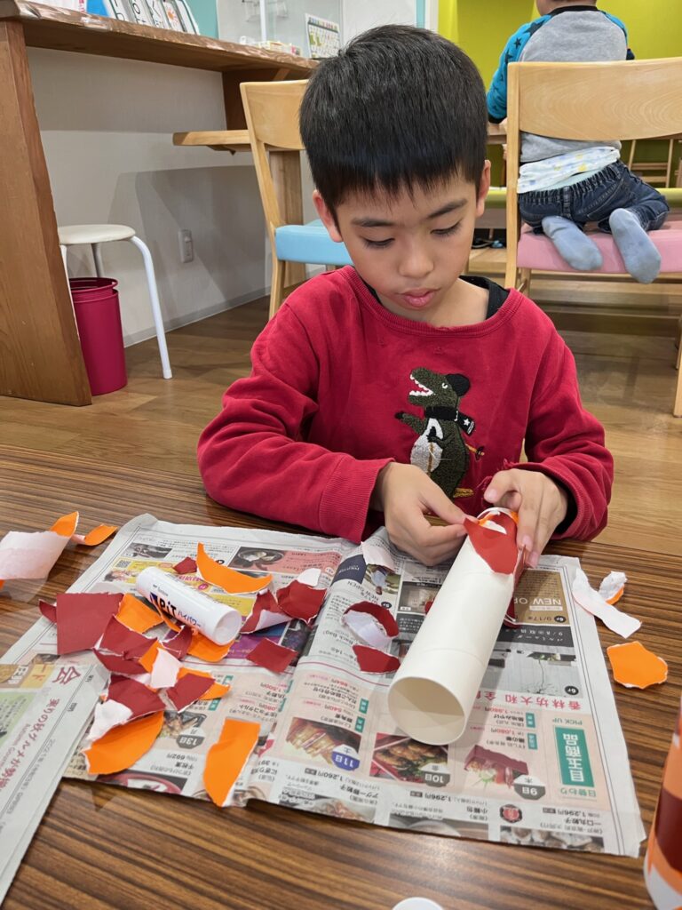 好きな色紙をちぎって貼っていきます。