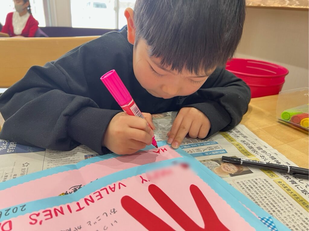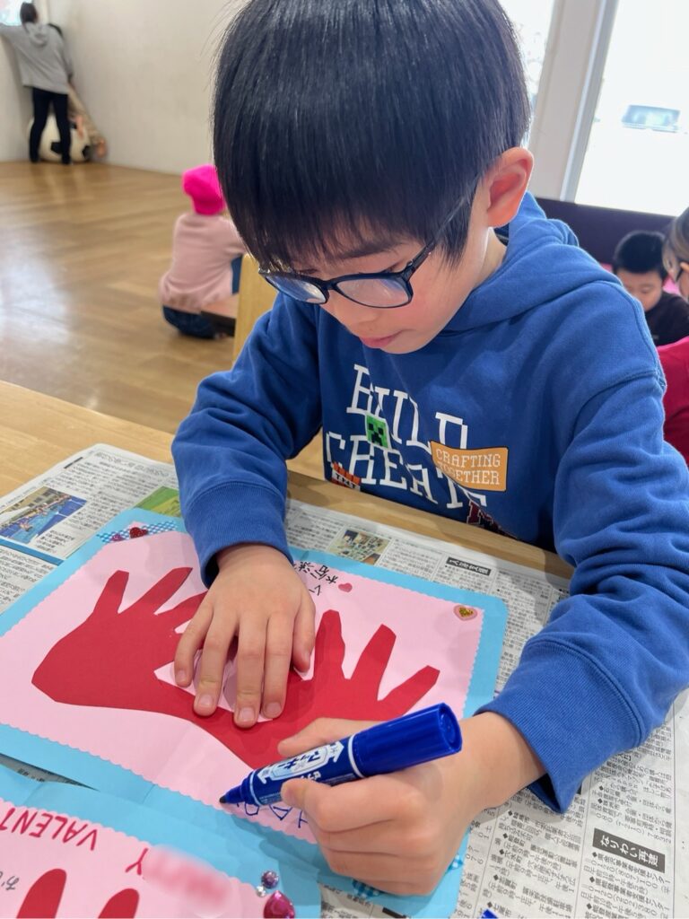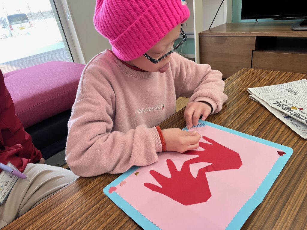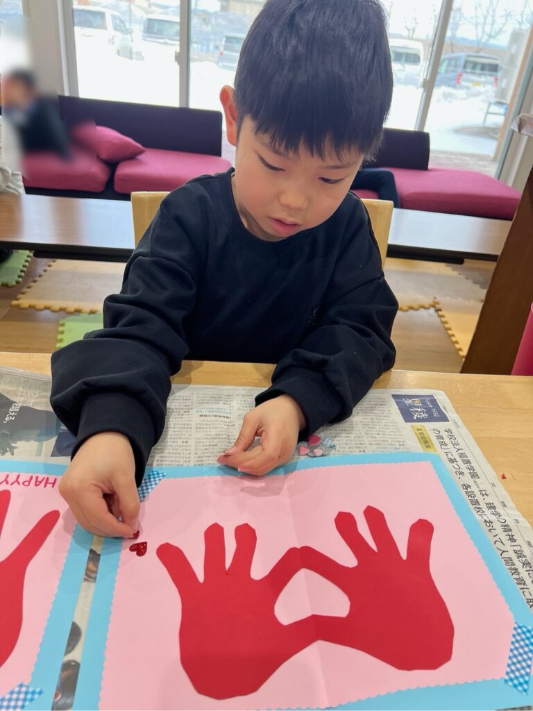 今日の工作は、大切な家族に感謝の気持ちを込めてバレンタインカード💌を作りました😊