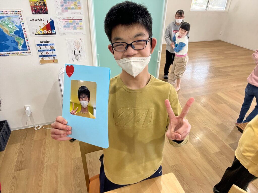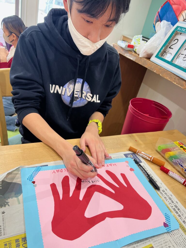 手型を逆さにメッセージカードに貼ると、素敵なハートができました💖