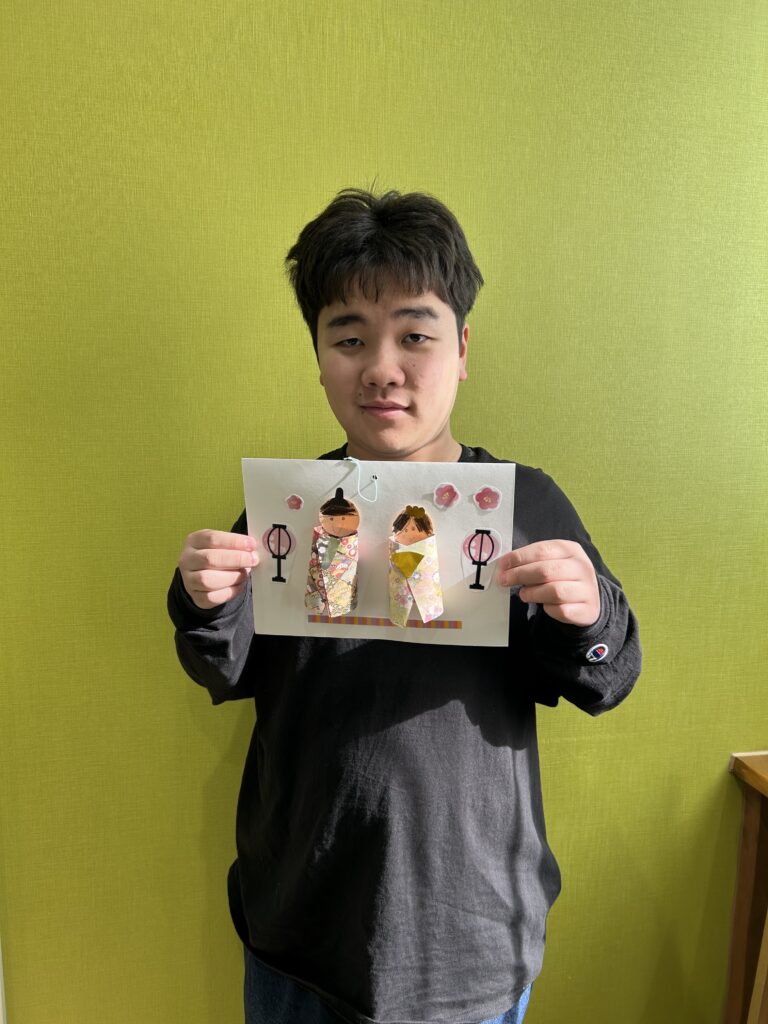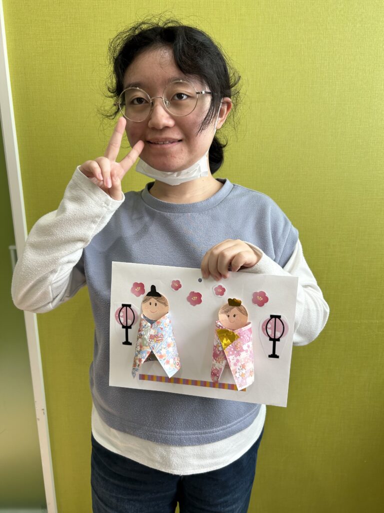 もうすぐひな祭り。今日は折り紙を使って雛飾りを作りました🎎