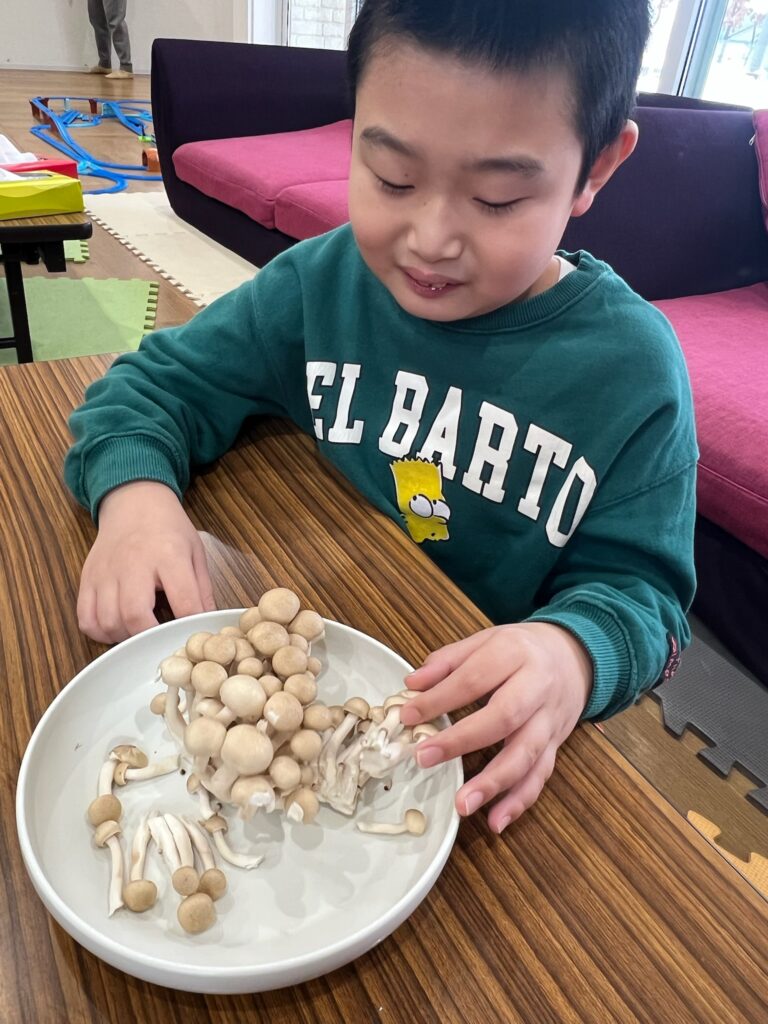 しめじは細かくほぐして・・・