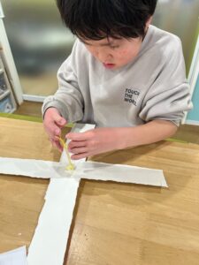 角のところは、力の要る作業ですが、みんながんばれ〜!💪
