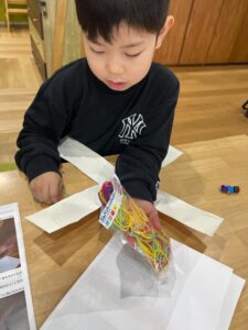次は、持ち手の輪ゴムをつけていきます!