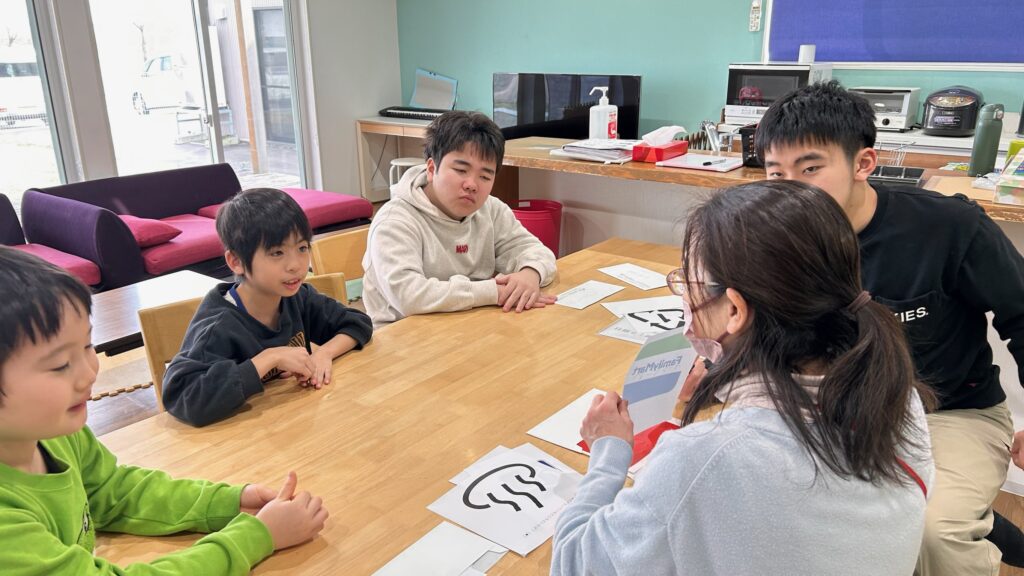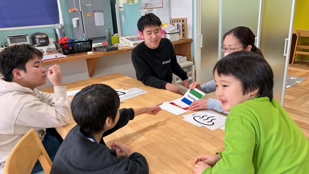 カードを見せてそれが何のマークか答えてもらったりとクイズに参加しました。
