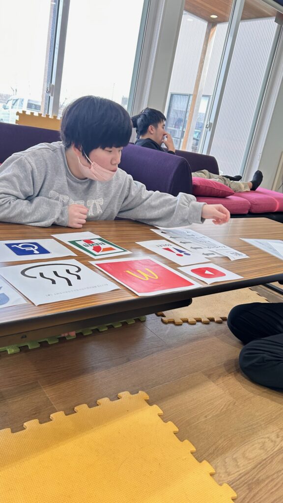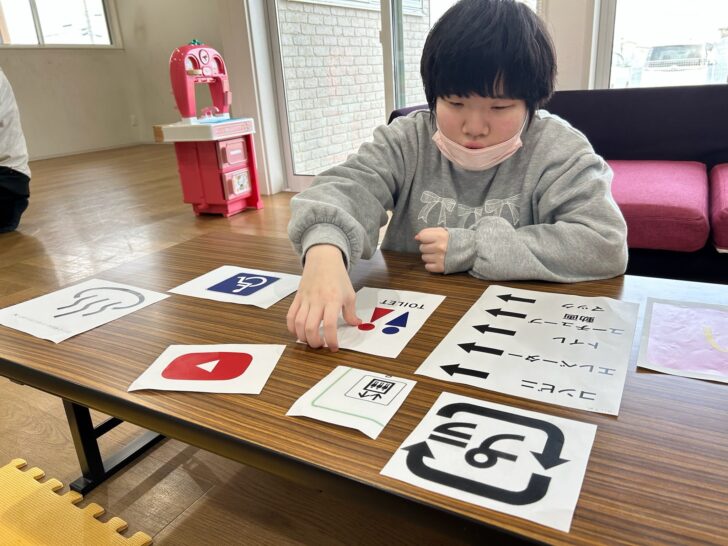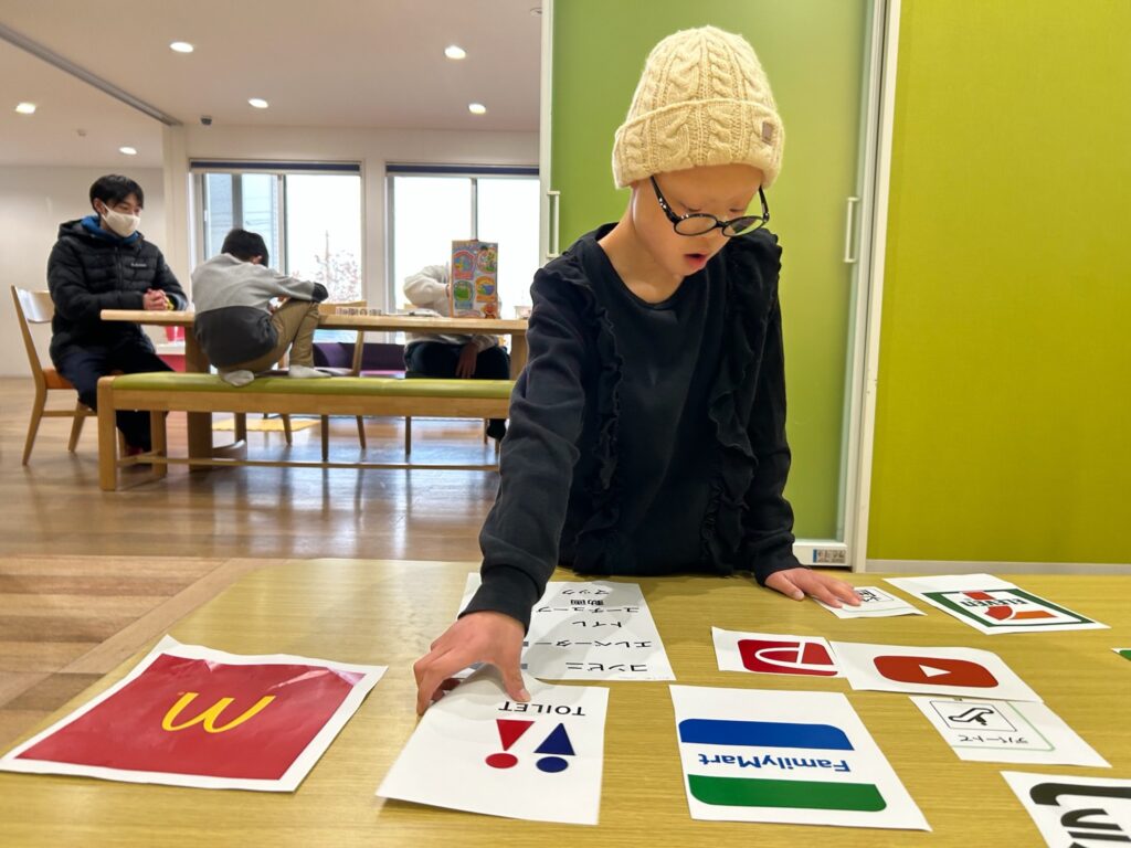 「コンビニのマークはどれ?」「トイレのマークは?」と質問してからカードを探してもらったり、
