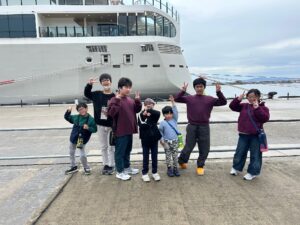 大きな船を近くで見るのが初めての子もいて、首を曲げて…「おぉ✨」と見上げて言葉も出ない様子。