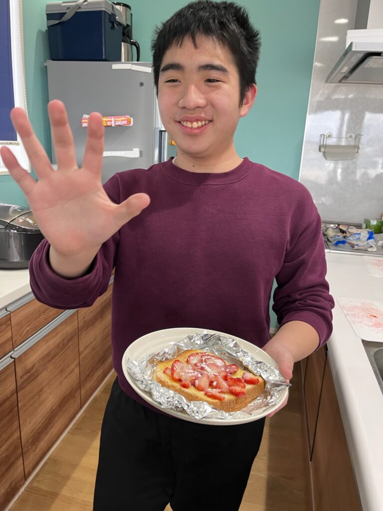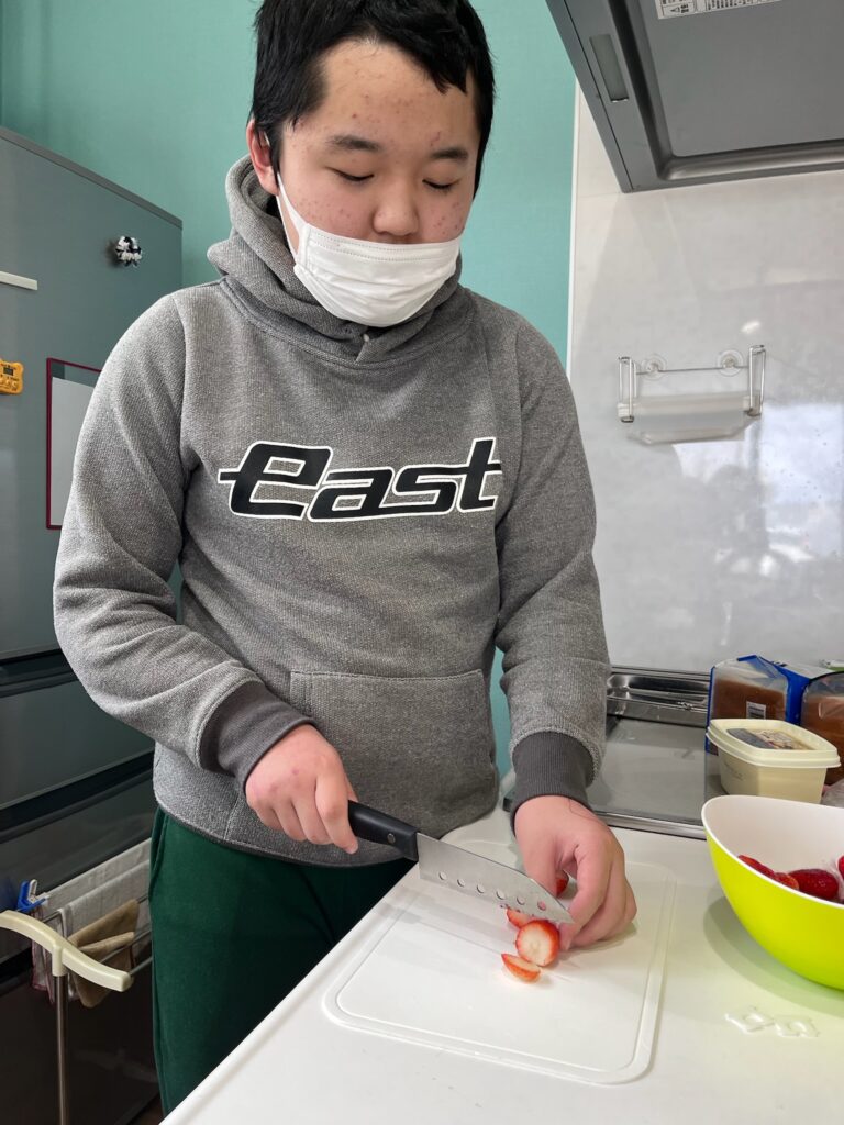 パンを焼いている間に、いちごを薄くカットしました☺️