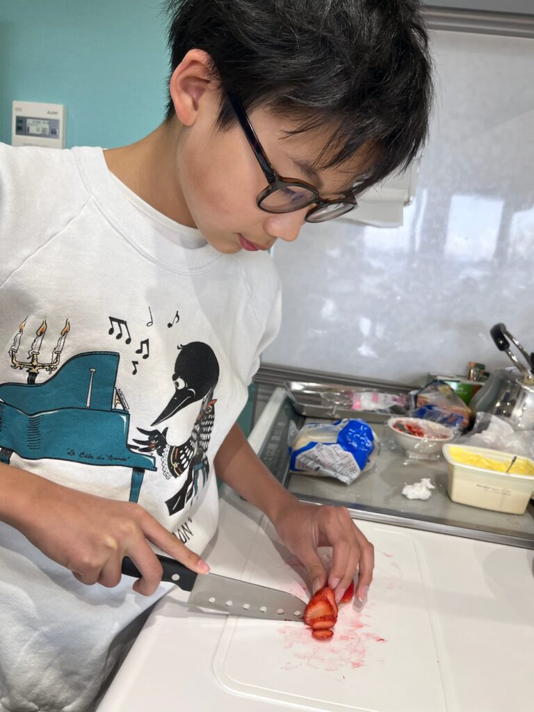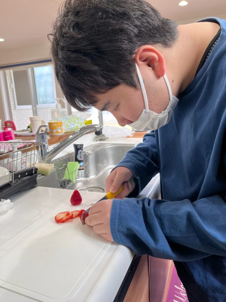 やわらかいいちごがつぶれないように上手に切れました☺️👏