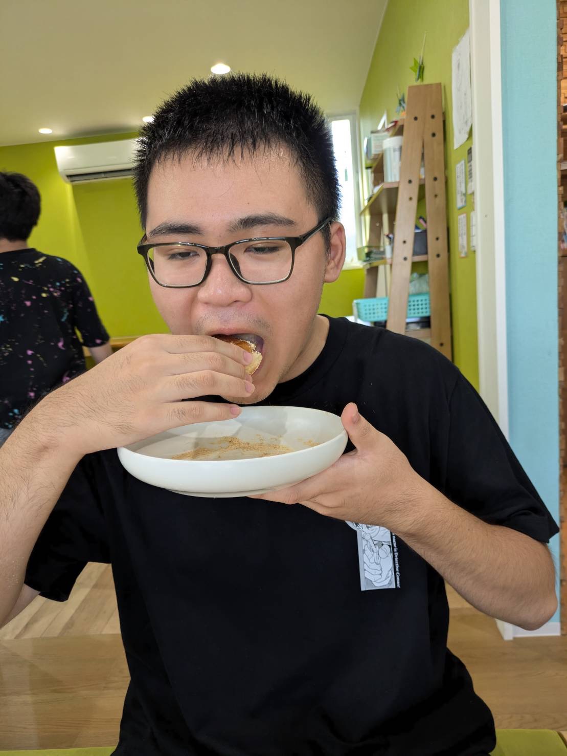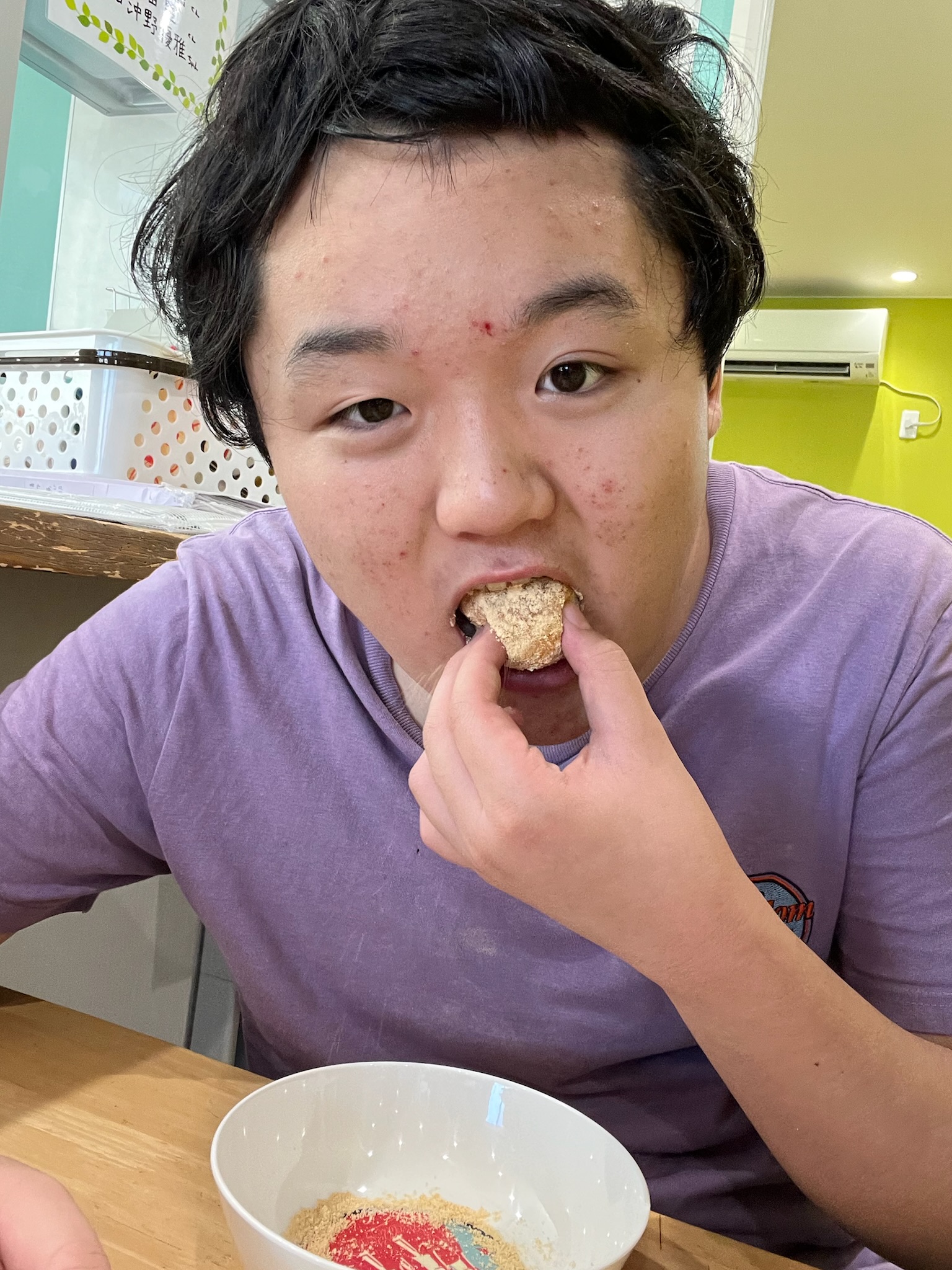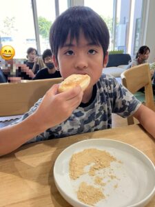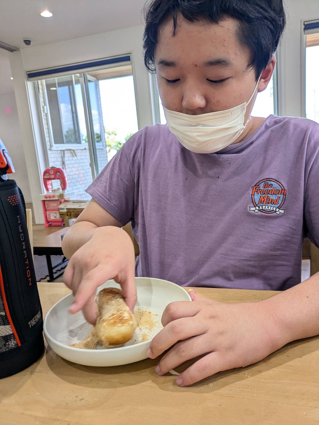 温まったパンにたっぷりきなこ砂糖をまぶすと出来上がり✨