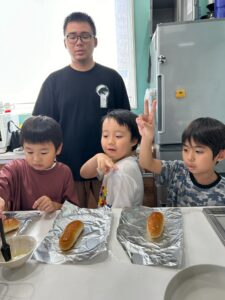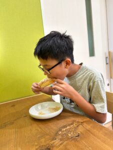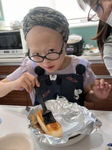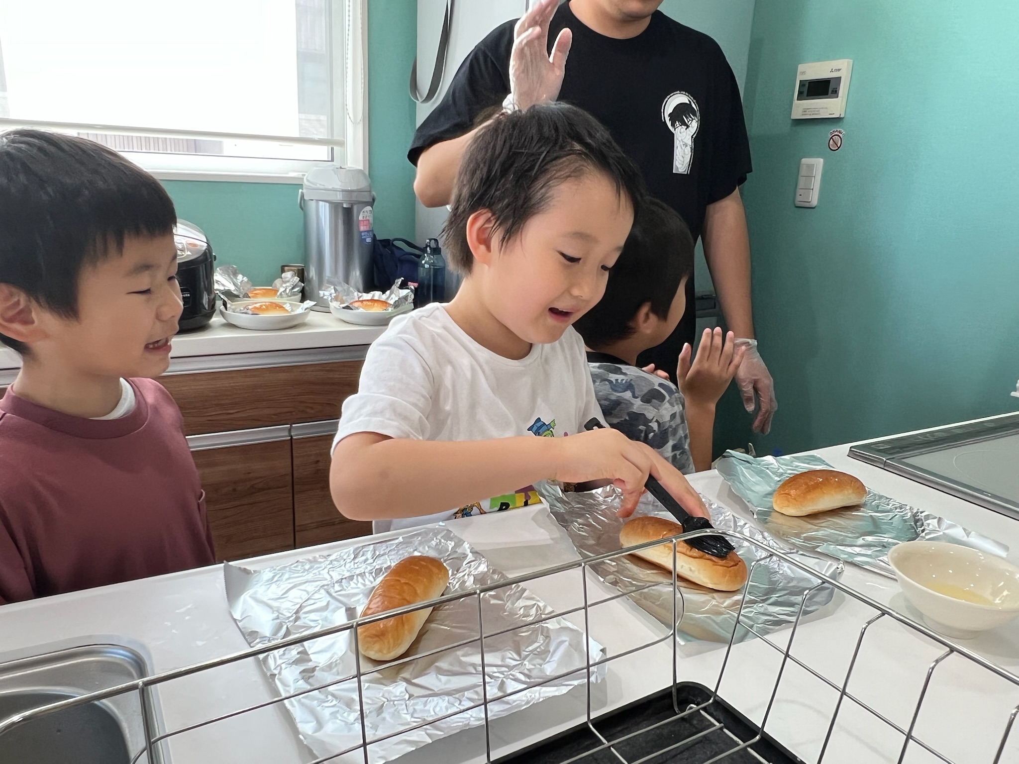 パンに油をたっぷり塗ったら、トースターで焼きます😊