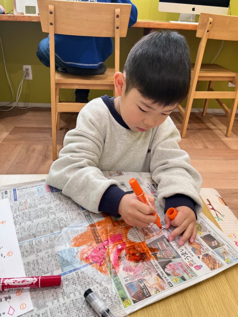 お手本を見ながら、今年の干支の馬や、好きなキャラクター、オリジナルデザインなど、みんなのびのびと描いていましたよ👍