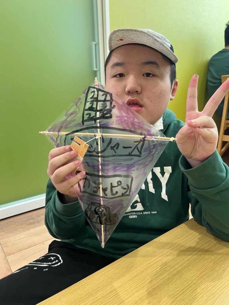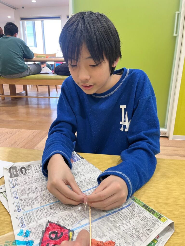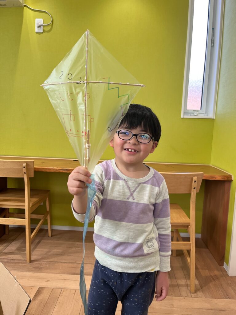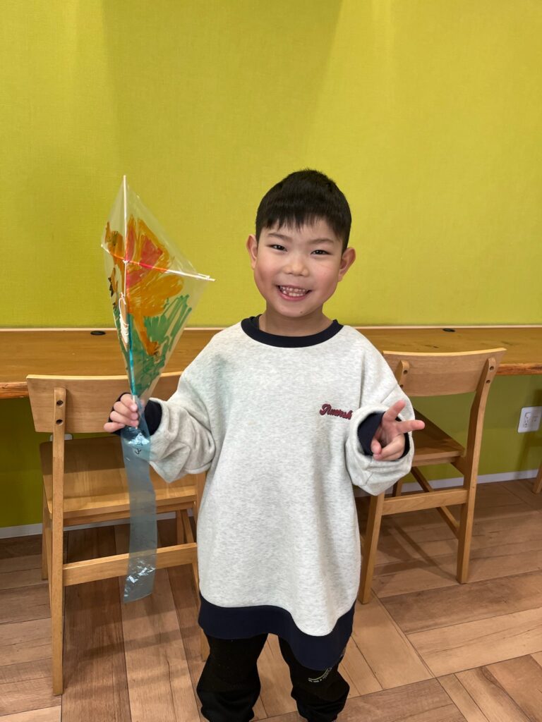 今日は自分たちで凧を作って、あげてみました❗️
