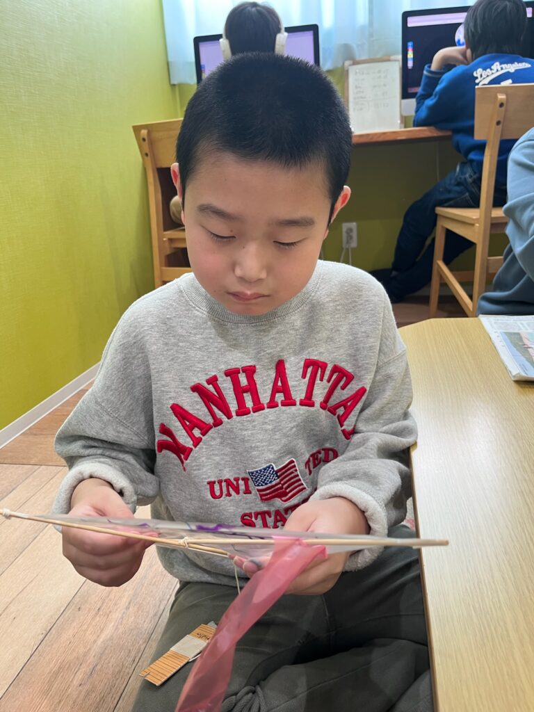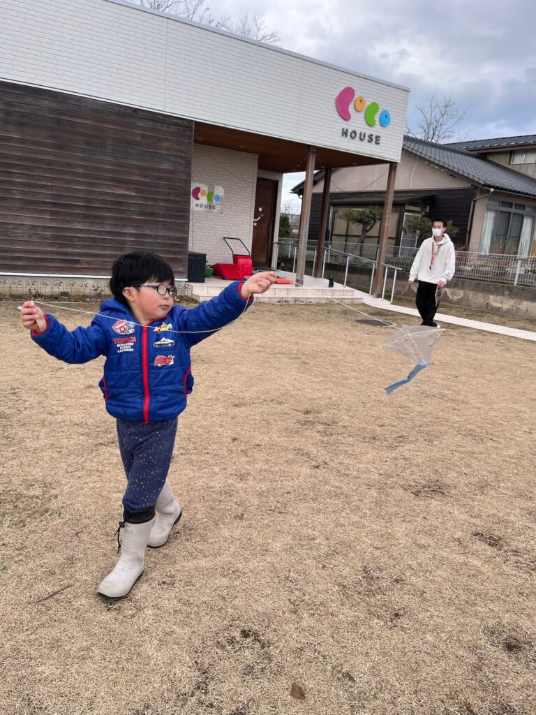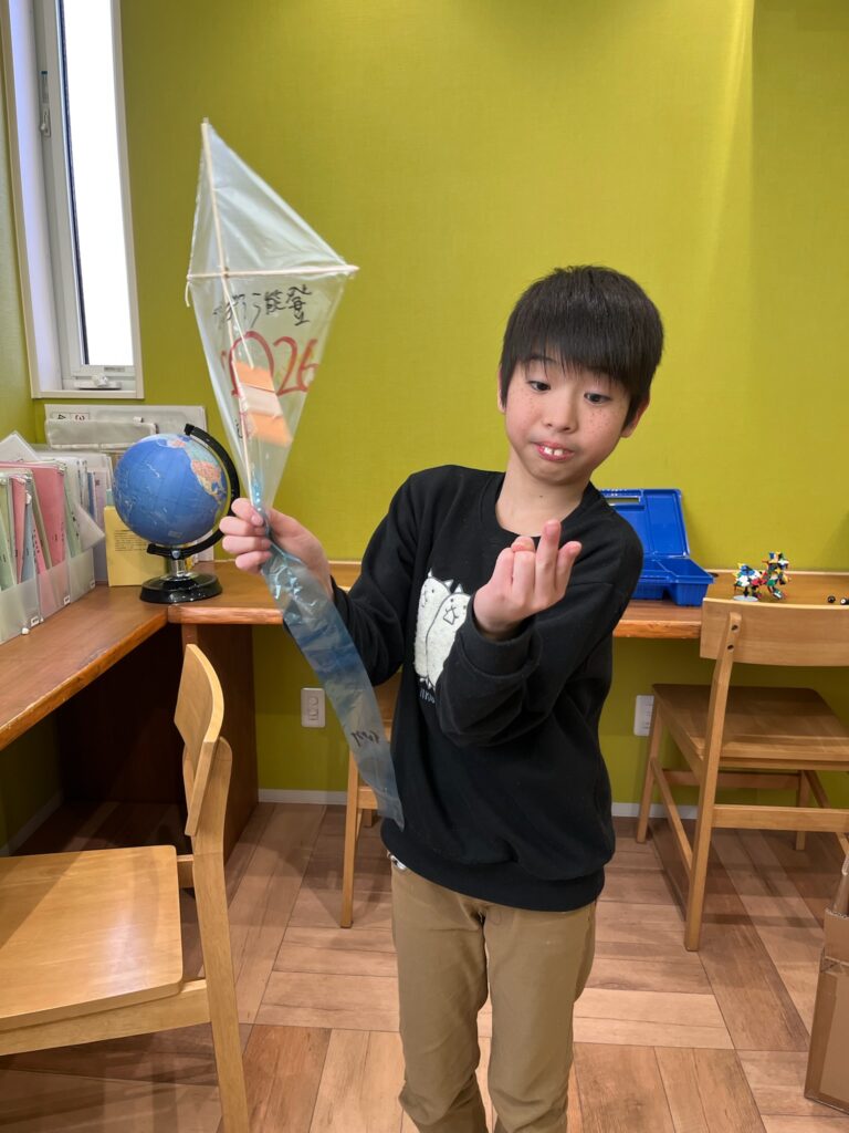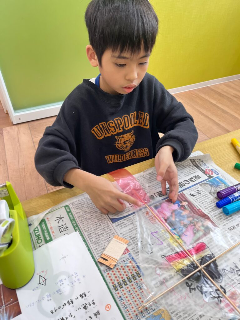 今日は自分たちで凧を作って、あげてみました❗️