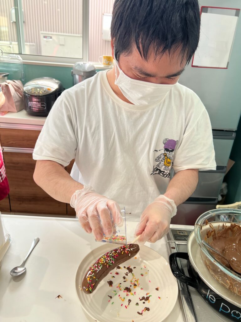 みんなが大好きなバナナとチョコのマリアージュ、チョコバナナ作りに挑戦です💘