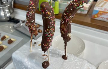 暑い夏に食べたくなる、冷たくて口当たりのよいフルーツ白玉をみんなで作りました。 午前中は、みんなで果物を食べや…